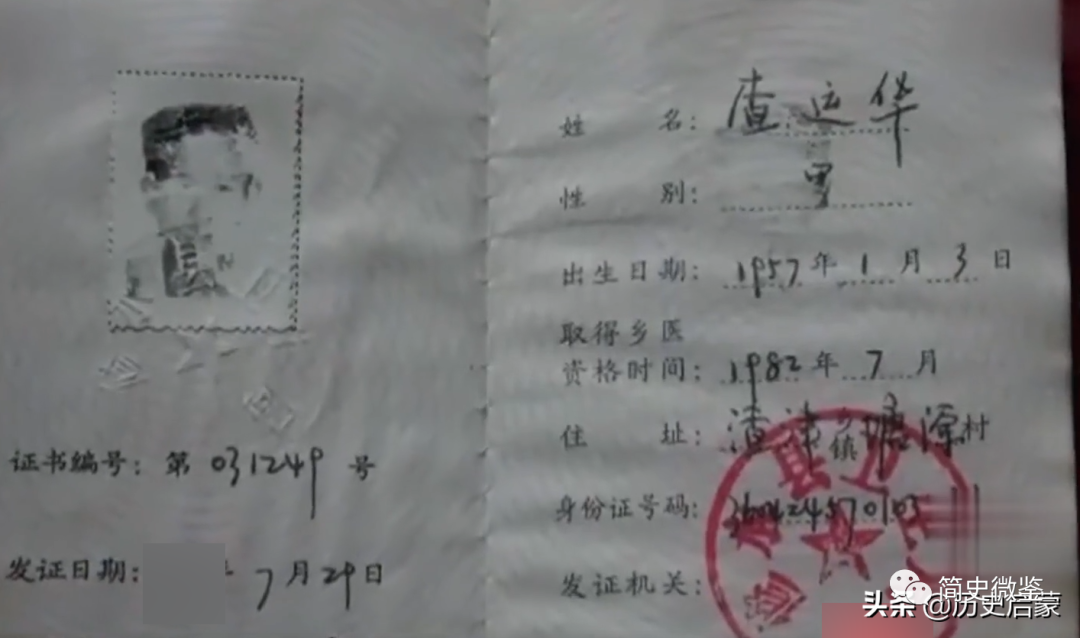 当问到他的行医资格时,查运华犹豫了一下,从兜里掏出一本老旧的乡村医生资格证来。张爱明打开看,见资格证的颁发日期是1982年,距今已经32年了,证上并没有每年卫生部门的注册印章。