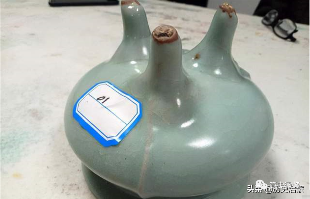 王锡龙边端详着手中的“瓷三足”边说:“十分珍贵,这批瓷器釉面光洁,外观柔和淡雅,有玉质感,部分瓷碗、瓷盘表面有莲瓣纹及开片,从器物造型、制作工艺、时代特征初步判断,是宋代青釉瓷器,我个人判断,这是南宋龙泉窑的瓷器。”