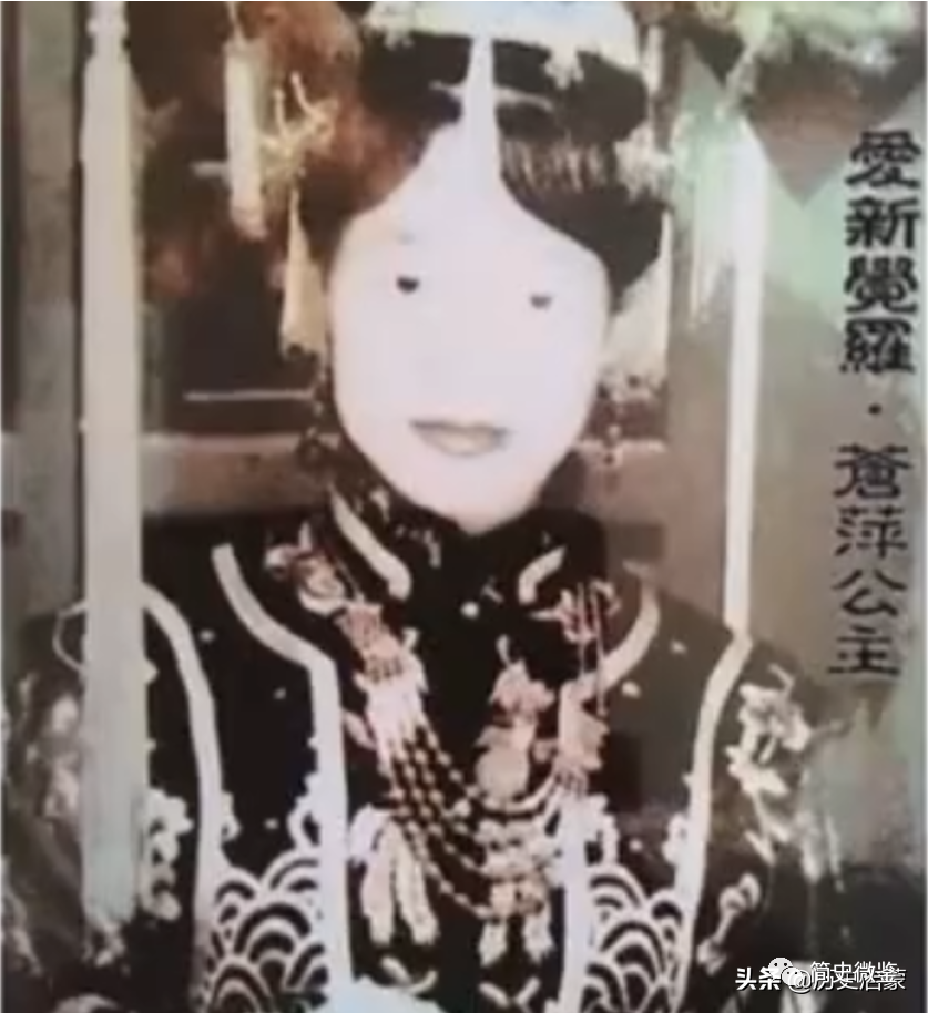 照片底部几个显眼的大字:爱新觉罗苍萍公主。这一行字下方还有一行略小的文字“皇玉鹰股份有限公司董事长:张凤英。