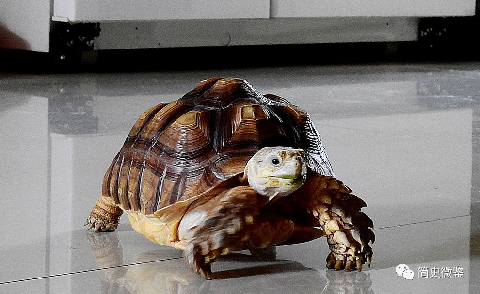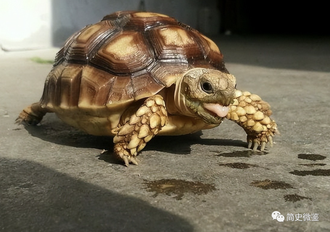它又名非洲盾臂龟,是世界中的第三大陆龟,也是非洲最大的陆龟。