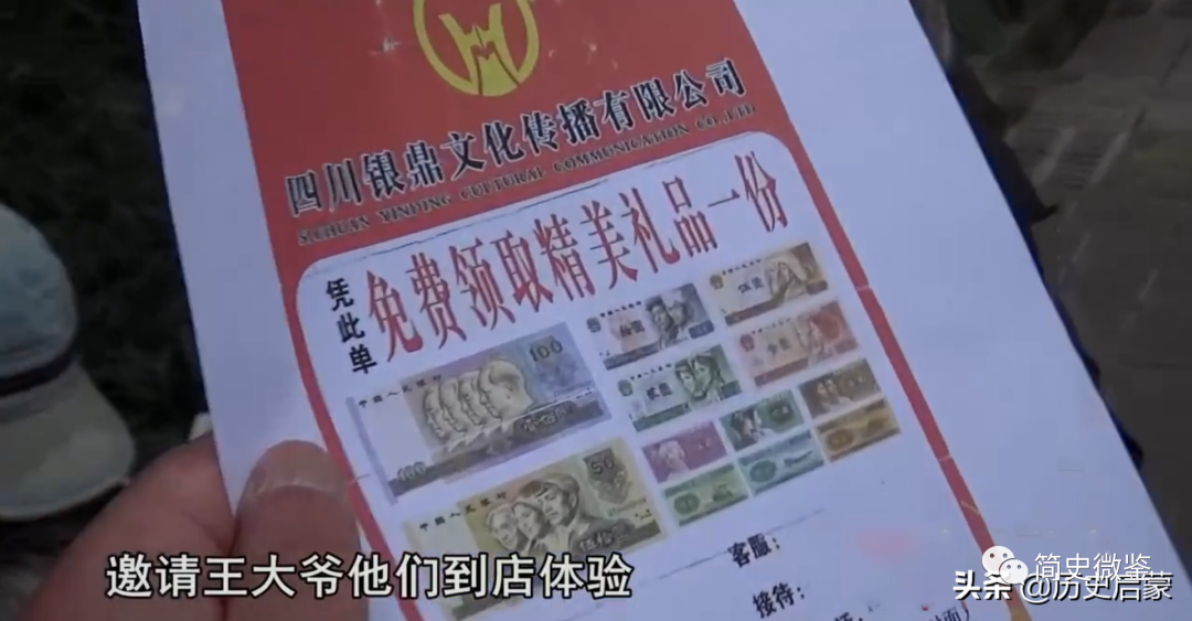 “大爷大妈们好,我是四川银鼎文化传播有限公司的工作人员,我们公司专门做收藏品的,刚开张不久,想给大家做个宣传,如果有兴趣的话,可以到我们公司里了解一下,还能免费领取一份精美礼品哦!”