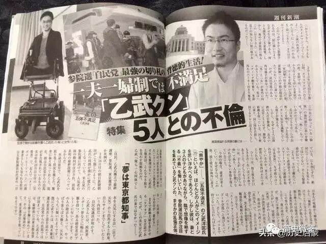 然而,就在乙武洋匡的地位越来越高时,他的丑闻也被公之于众,2016年日媒爆出他婚内出轨多名女性,与不同职业女性有染。