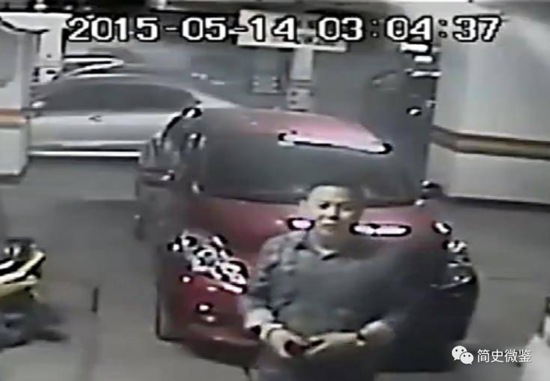 监控显示,2015年5月14日凌晨3点钟,钟某驾驶自己的路虎车,进入菜市场的地下车库,在车子停下以后,从车上就下来了三名男子,其中一人就是钟某。