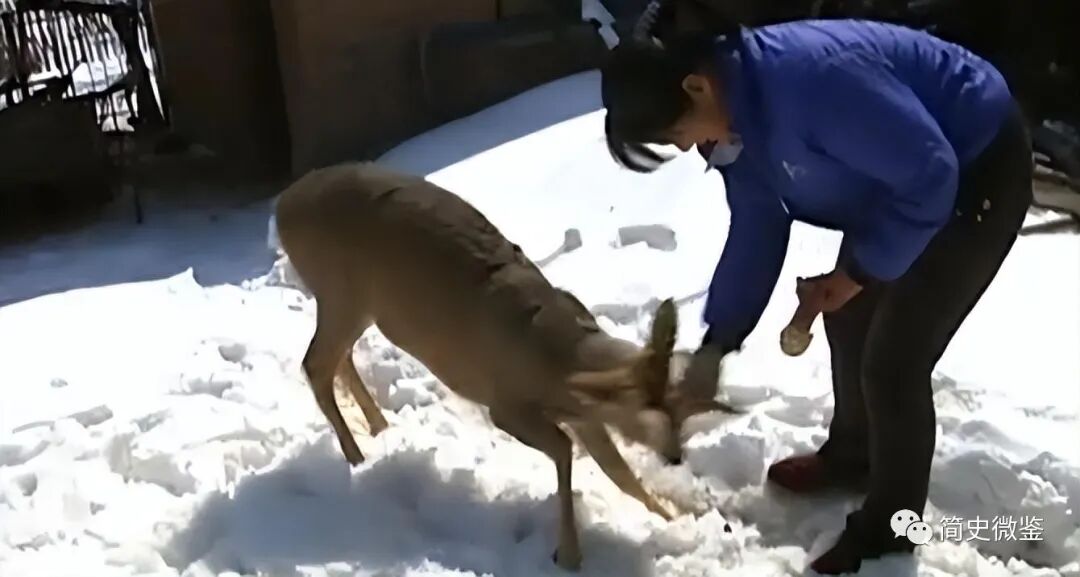 而小鹿似乎也知道对方是在救自己的命,全程十分乖巧,任由叶喜春将它揽在怀里。
