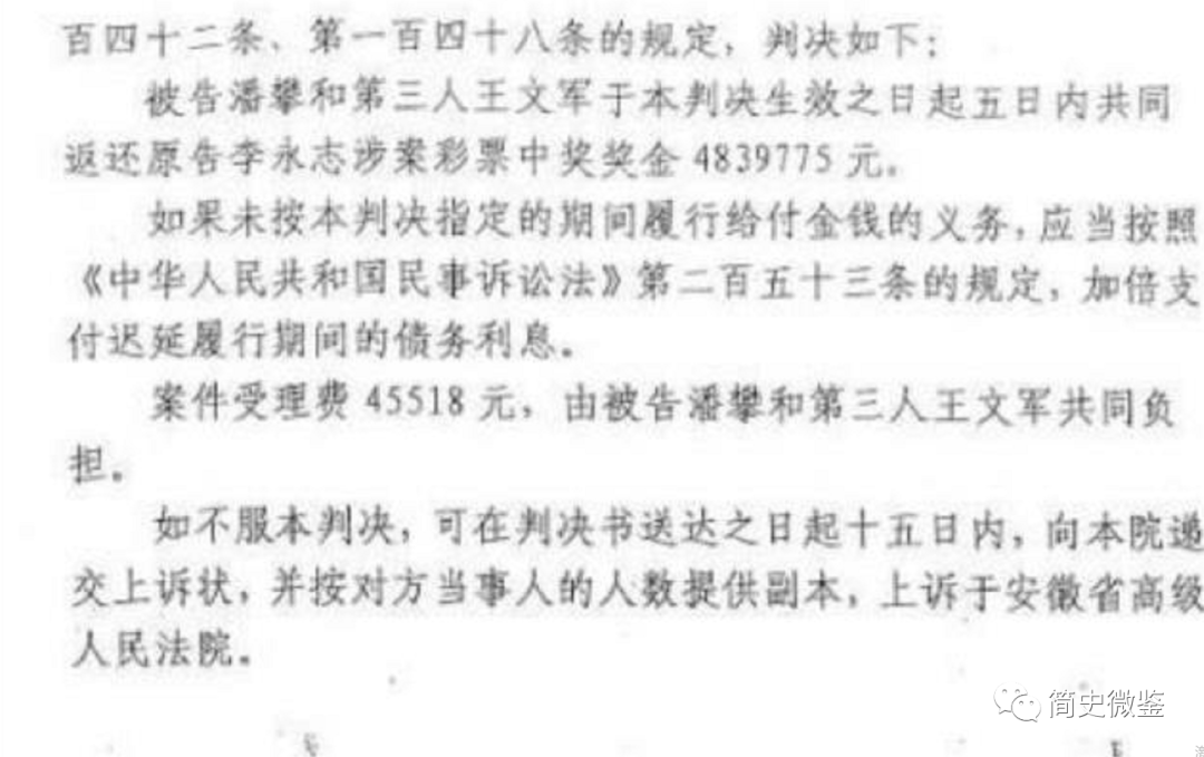 但是在铁证面前,潘攀的抵赖显得格外苍白,因此法院判处潘攀要归还600万元的彩票钱,税后就是480多万元。