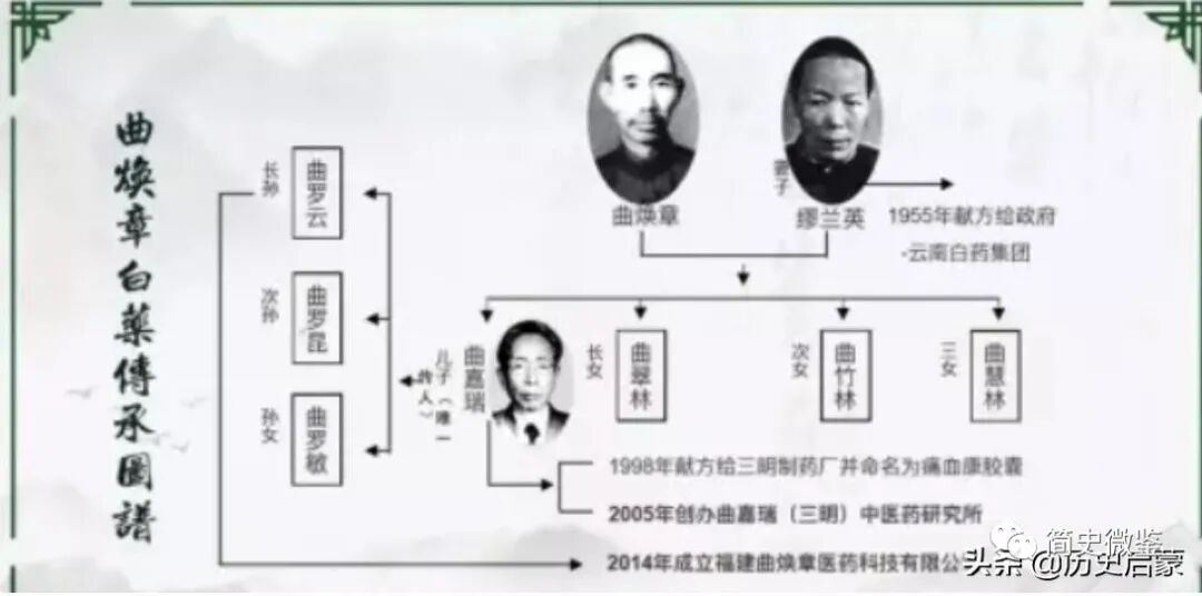 就在通海,曲焕章遇到了可以厮守后半生的女人缪兰英,并在1913年的时候决定和她结婚 。结婚后的两人在县城开了一家用曲焕章自己名字命名的药房,生活过得还算不错。