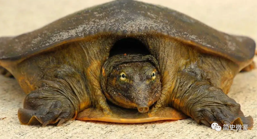 平胸龟的身上也没有肉刺,背部也比较平整,身子还会缩回壳里。