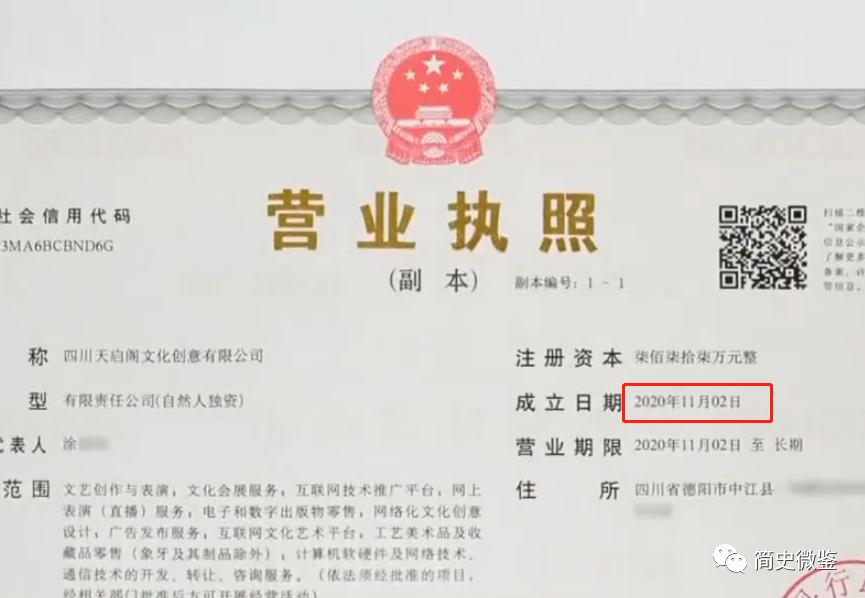 四川天启阁文化有限公司,成立于2020年11月2日,注册地址就在四川省中江县,是真实存在的一家公司。