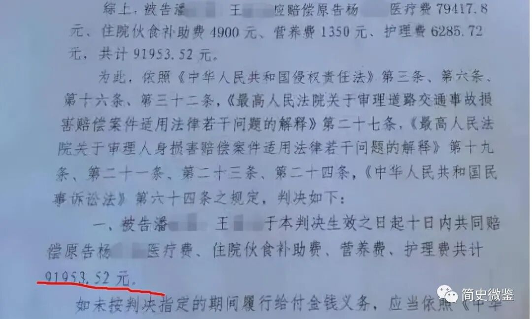 最终经过综合评定,小霖家一共需要赔付老婆婆医疗费等费用共计91952.52元,这起交通案件证据充分,责任认定准确,已经将事情审理的非常清楚。