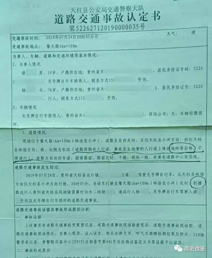 原来老人的家属认定是小霖撞到了老人,所以要求他们垫付10万元的医药费。经过治疗的老人虽然醒了,但她已经忘记自己是怎么摔倒的。对于巨额赔偿王女士非常不能接受,她不可能同意这种要求。经过一段时间的调查取证后,天柱县交通警察大队出具了本次事件的责任认定书,最终认定小霖应当为此次事故负全责。王女士自然不会接受这样的结果,于是又提出复核,但最终还是维持了原判,这究竟是为什么呢?面对质疑警方给出了以下证据。