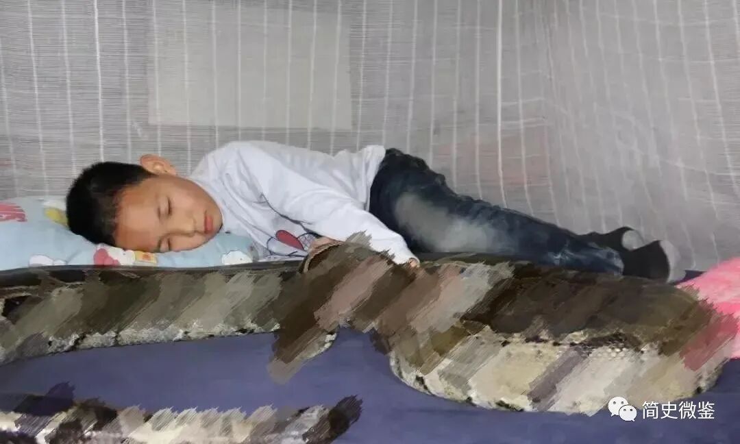突然有了“小伙伴”的天增非常珍惜小蛇,他白天就在院子里跟小蛇玩耍,或是抱着它晒太阳,到了晚上,怕小蛇会冷,天增就将它直接拉进被子里,与自己一起睡被窝。蛇类是冷血动物,它们的行动全靠本能,是非常危险的,但不知为什么,小蛇从来都没有对天增表现出敌意,显得非常乖巧。本以为小蛇会一直这样陪着自己,随着日子一天天过去,小蛇的变化让李立父子俩都傻了眼。李立就经常买一些鸡肉、猪肉之类的东西来喂小蛇,刚开始还好,但慢慢的小蛇越吃越多,身子也越来越壮,曾经只有半米长的小蛇此时已经超过一米,并且身体比人的手臂都粗了。