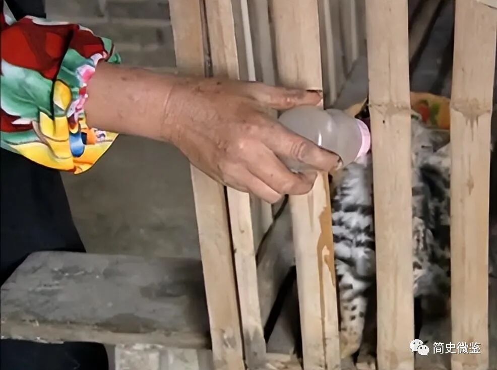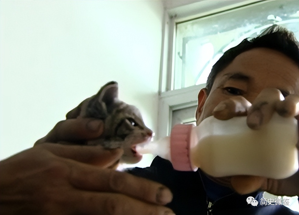 后来他又换成奶瓶,挖了孙子的两大勺奶粉,小猫才咕噜咕噜地吃起来。