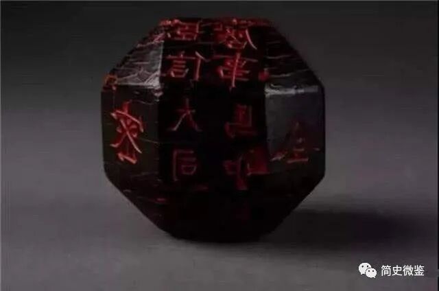随着泥土一点一点的擦干净,黑球也露出了全貌,原来它是一个多面体的黑煤球,好几面都印有红色的字。