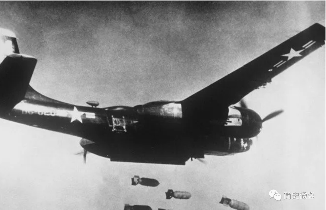 此时美军开始低空飞行,他们的轰炸机瞬间就投掷下几十枚燃烧弹,附近的阵地上立刻被点燃,随后大批的炸弹也被投了下来。