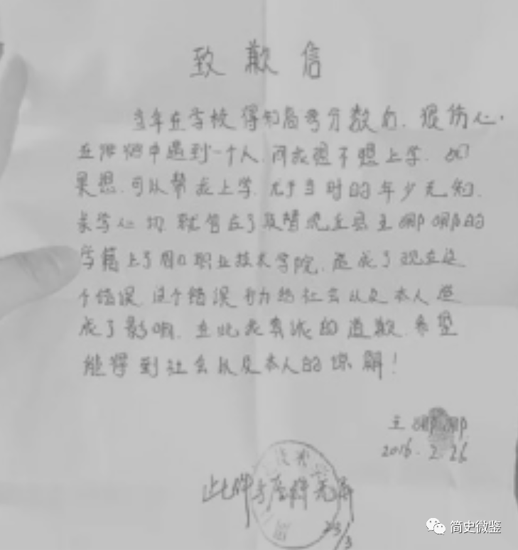 此事在2016年被曝光后,张莹莹曾手写过一封道歉信,身为人民教师,信中却错别字频出,引得网友嘲笑。