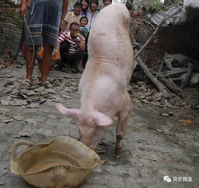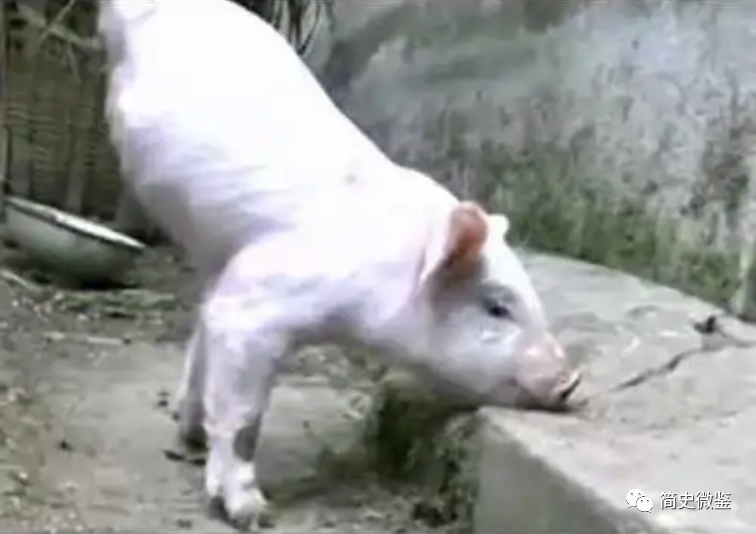 而看清猪的后半身后,现场的人无不震惊,紧接着在他们诧异的目光中,猪缓缓倒立,一摇一晃地来到圈门前。