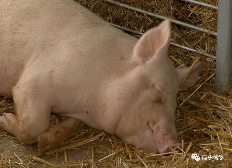 并且,与其他猪对比似乎也小了一截,奄奄一息的样子,看上去随时会一命呜呼。
