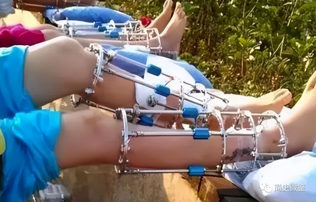 因为外置的增高器上好几根钢针会直接扎进皮肉订到骨头上,做这个手术的人可能会因此产生骨髓炎、血管神经损伤等问题,严重的会直接导致下肢瘫痪甚至需要截肢。