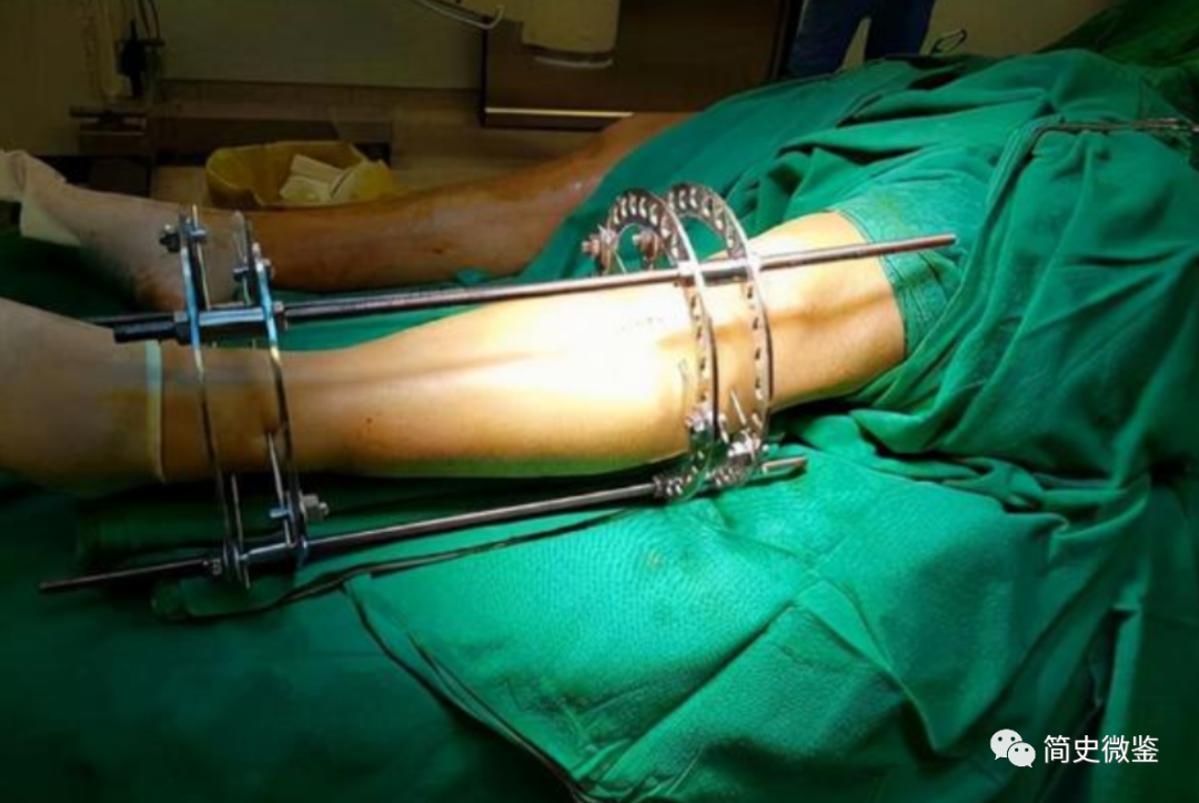 李亚诺很快完成手术,医生把他的腿骨打断,分别在断骨两边订入四根钢针,再使用机械对断骨进行物理拉伸。这个拉伸需要每天拉开一点点,持续好几个月,也就是说接受这个手术的人每天都要承受常人难以忍受的痛苦。