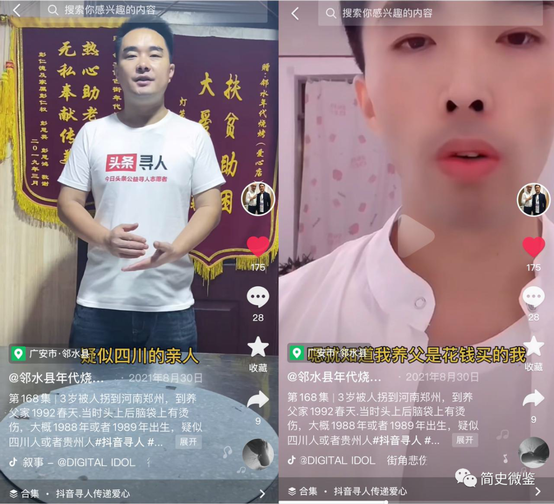 没想到自己只是随手拍摄一些视频,竟能改变一些人的命运,甘彪心里一股自豪感油然而生。甘彪帮老人找到家的事经过了新闻媒体的大量报道,这让甘彪收获了不少人气,他干脆一不做二不休,自己的短视频账号,就专门帮人寻亲吧!此后,在后台有不少人私信想要找甘彪帮忙寻亲,甘彪提醒他们要把自己的遭遇和丢失亲人的体貌特征描述一遍,然后甘彪再做成视频,发布到网上。尽管这里面大部分视频都石沉大海,但只要有一点点希望,甘彪就感觉自己做的事情有意义。