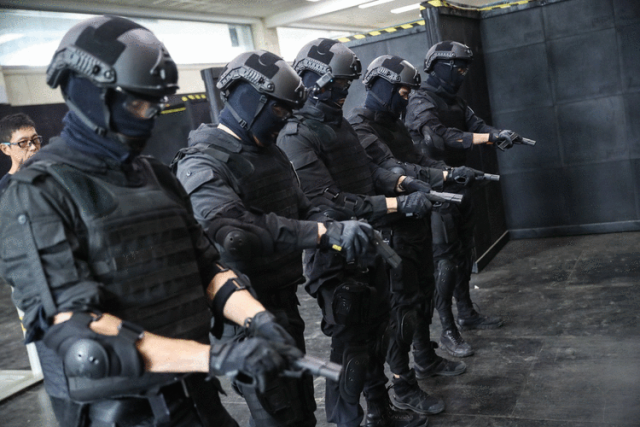 而随着手枪、防爆枪、以及一些杀伤性武器,一一跟随特警亮相后,这个队伍的部分人也产生了恐惧。