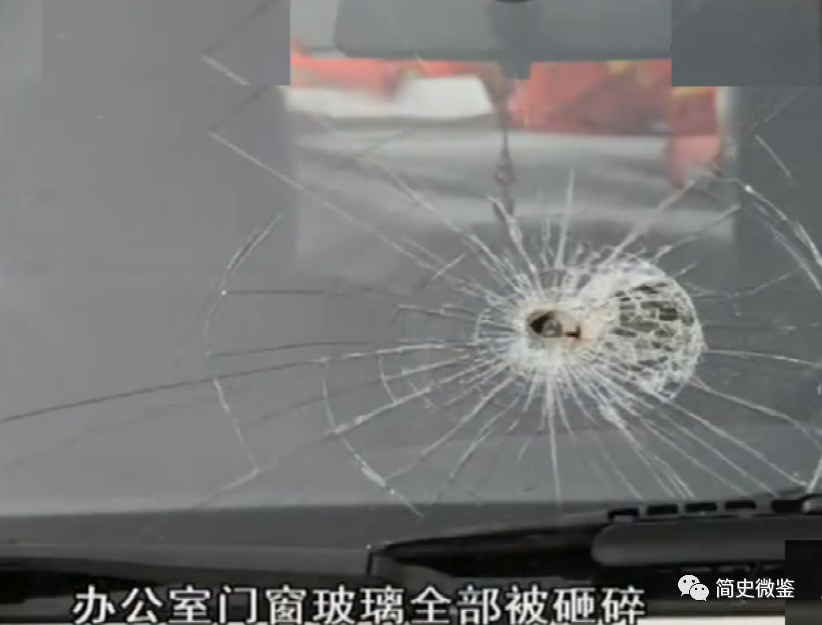 尖锐的钢筋插穿驾驶位的玻璃,险些扎进工作人员的胸膛,好在他们躲避及时,才避免了悲剧的发生。