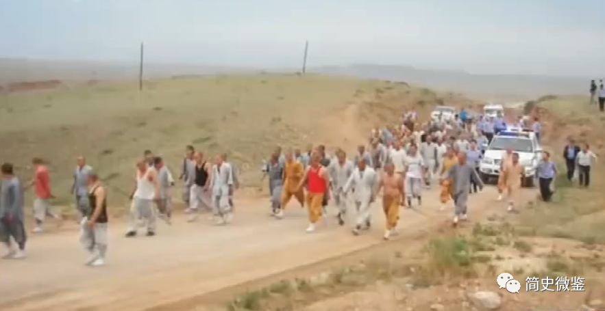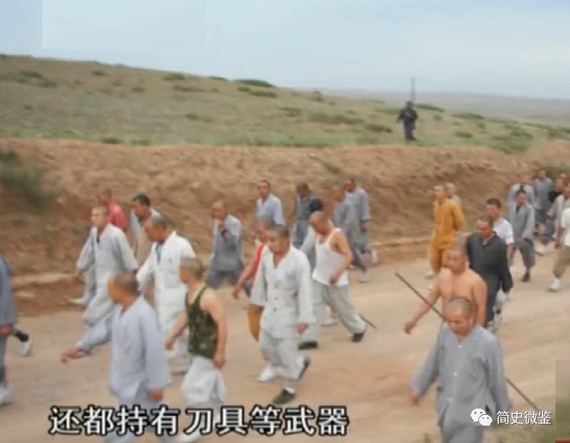 车上齐刷刷的下来百余人,全都剃着光头,穿着布衣僧袍,恶狠狠地盯着办案民警。