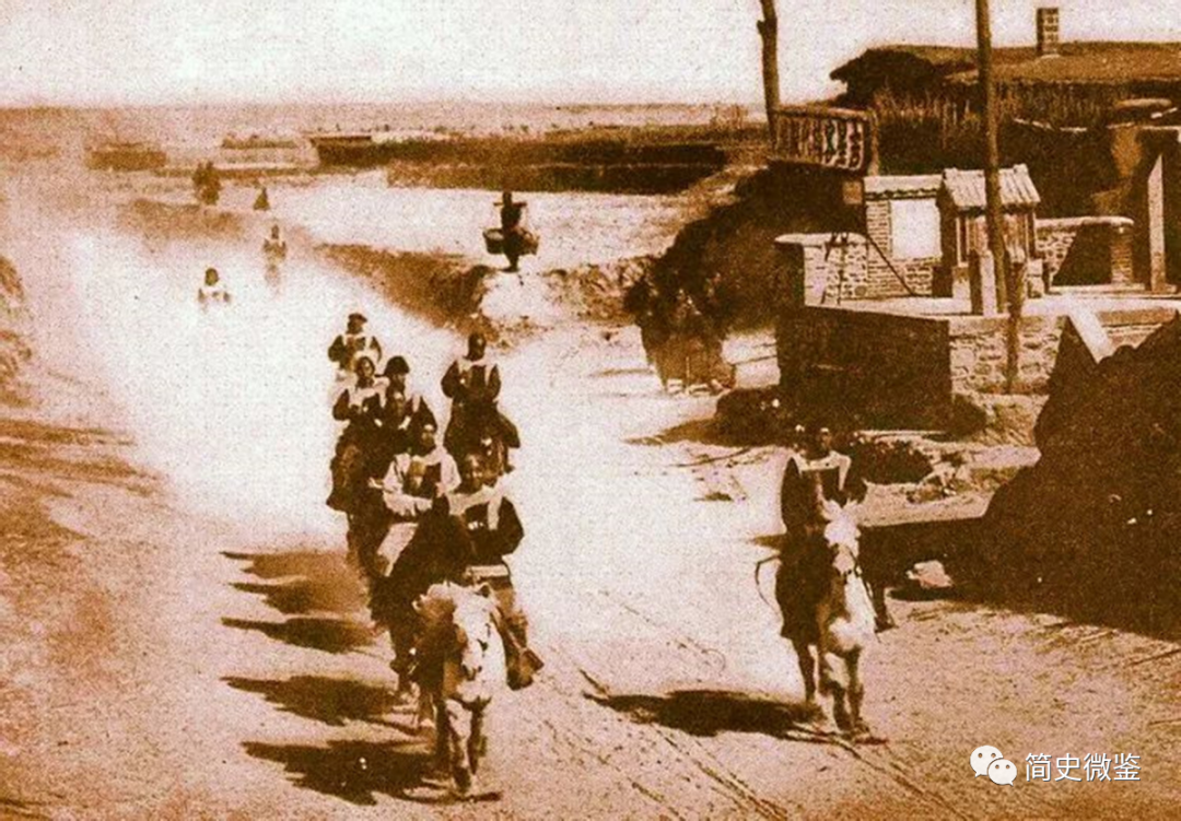 他们急速行军,马匹混乱的马蹄声,队伍扬起厚厚的灰尘。声势浩大,威风凛凛,代表团的同志们心里都有着对未来的憧憬和对胜利的期望。