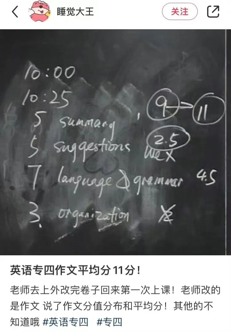 提问:据说英语专四作文平均分11分,大家有听到别的消息吗?