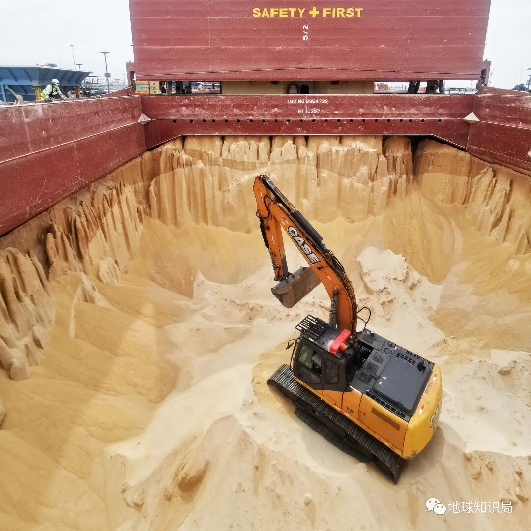 以为是工地挖沙,但其实是港口运豆粕
