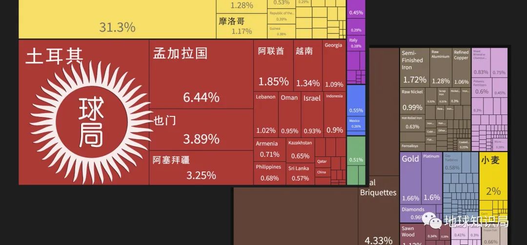 除了主粮,乌克兰和俄罗斯还占全球葵花油出口的75%,占所有食用油的10%。粮食出口国土耳其的葵花籽油的自给率仅为64%,缺口主要由乌克兰补齐。总的来说,西亚北非国家总有一些农产品门类依赖于乌克兰。