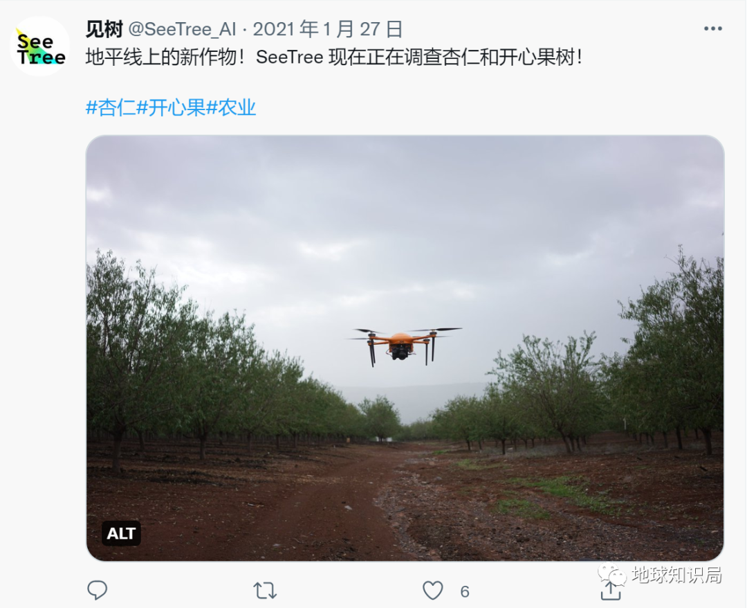 “未来感”农业不仅体现在温室技术上,也体现在以色列诸多农业科技公司中。位于以色列特拉维夫一家名为“SeeTree”的农业科技公司,依靠先进的无人机航拍图像和机器学习,致力于为每棵果树提供详细“健康报告”,让农户在客户端实时监测到农场信息,实现果园管理的“远程监控”和“私人订制”。