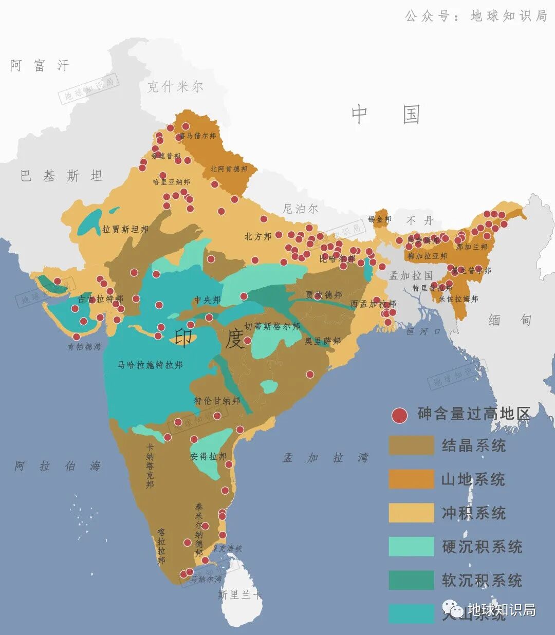 (砷污染与含水层类型的关系 参考:CGWB)▼