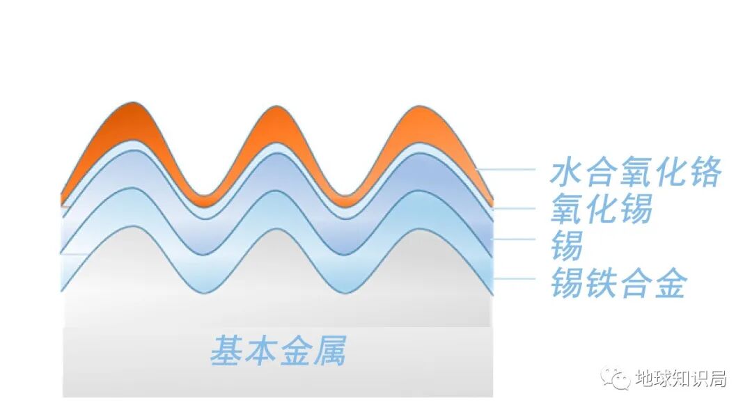 马口铁皮含有5层,最内层是锡铁合金。对于一些蛋白质含量高、酸度和色素高的原料,会在接触食物侧再涂一层有机化合物。