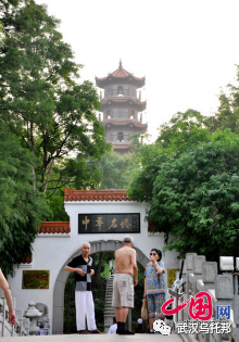 上世纪九十年代初,武汉解放公园在其中心岛近20亩地上建成了一座规模宏大的“中华名塔园”。图为华夏第一古塔—河南登封嵩岳寺塔。