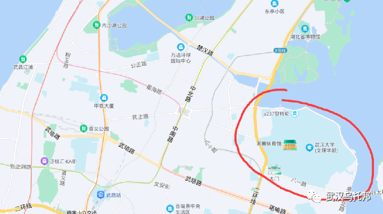 从位置来看,武汉大学当年选址还是不错的,就在东湖边上,所以当年搞学校,也没有去闹市区抢地块,而是选了一块比较安静的地段,这也适合教学。