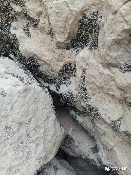 看着这石头上长着的小贝壳,感觉生命还是太强了,每年冬天过后,次年春天涨水时,这些石头上又布满了新的小贝壳了,可惜的是这里是长江,要是海边的话,也许我就可以拿桶来铲海鲜回去吃了。
