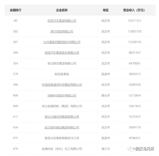 前面看了湖北的上市企业后,想着看看是否还有一些没有上市的公司,然后从网上查了一下湖北规模排名靠前的企业,结果,这不查不知道,一查才发现,湖北这些企业还是挺大的,特别是东风汽车,这个真的没想到,居然是湖北省内最大的企业了。
