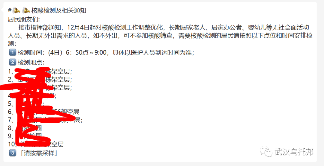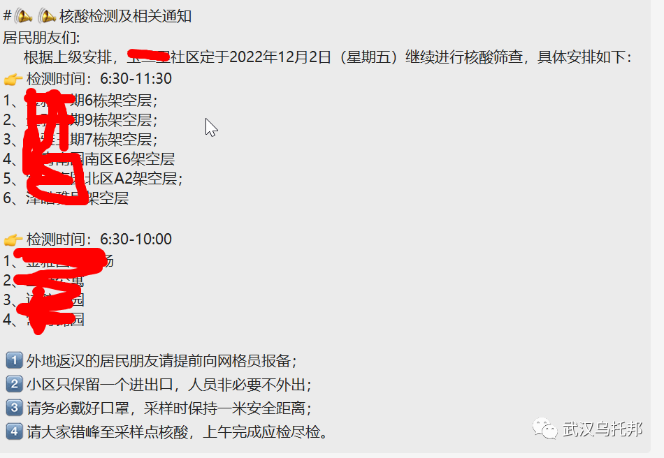 上周五的核酸通知,还是一如既往,现在武汉做核酸都成习惯了,一个个刚学会说话的小朋友,都知道做核酸,甚至成了每天下楼第一件事情,因为2022年入冬后,核酸时间就开始有调整了,2022年暑假时,每天中午上午那么热还有做核酸的排队去。