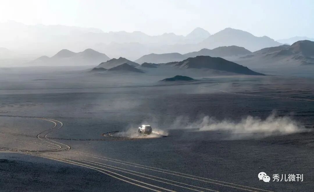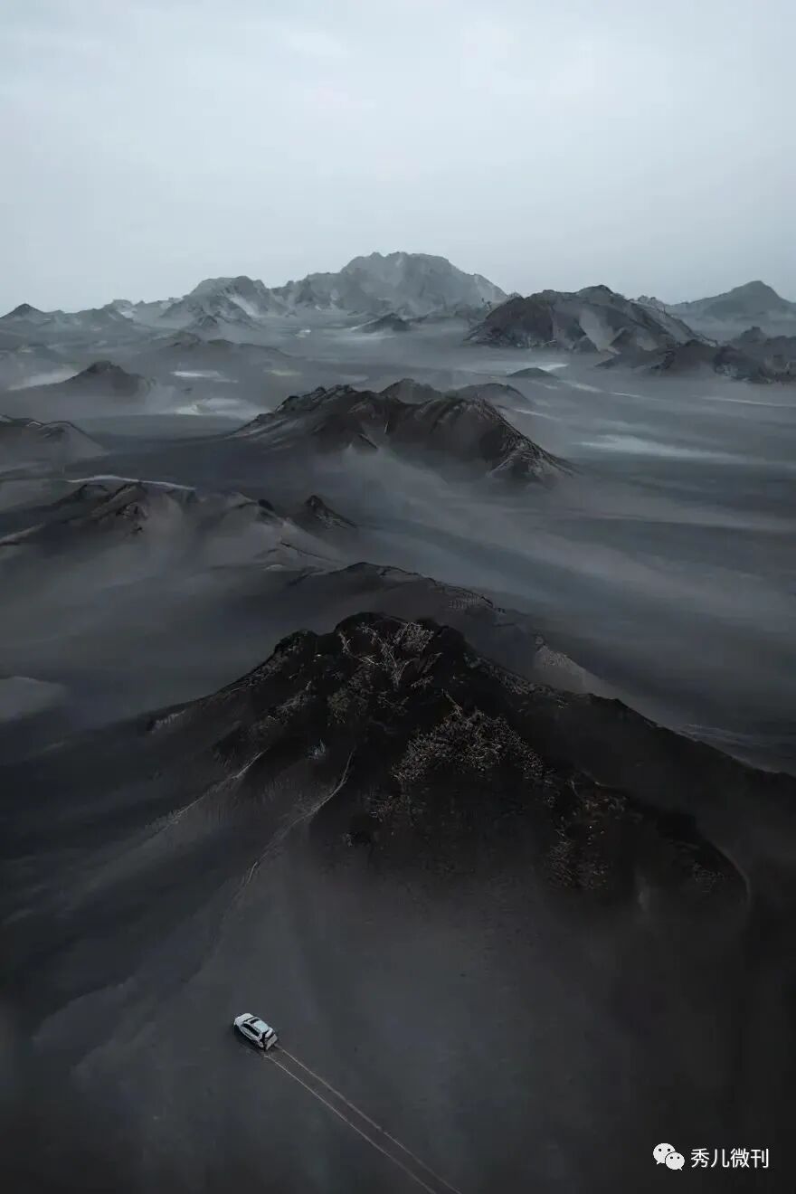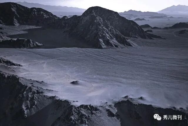 黑独山没有人居住,更很少有人驻足,飞鸟不来,寸草不长的地方,大大小小的山包被黑色的沙石覆盖着,纯粹的黑与白,塑造了它酷似月球表面的外观,黑白交替的山峦颜色,宛若上天为之泼了墨的神奇。可惜有人开车进来留下了一道道车辙印,也有人为了炫酷,车子冲上了山坡,还有的在山脚下原地画出圆圈,这些车辙印在无际的荒凉之处,显得格外显眼,也形成了一种不一样的风景。这里无论春夏秋冬,除了黑白两色,你都看不到其他的颜色,五彩缤纷,绚丽多彩这种词在这里用不上,冷艳孤寂的色调,犹如一幅幅天然的水墨画,不禁让人感叹大自然匠心独运。