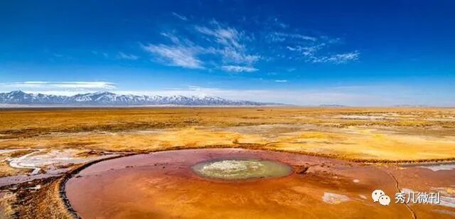 4,恶魔之眼艾肯泉艾肯泉位于茫崖市花土沟镇莫合尔布鲁克村,人们称它是“大地之眼”,也叫“恶魔之眼”。直径十几米的艾肯泉,泉眼处如翻滚的沸水不断升腾涌出,周围是长期沉淀的矿物质,形成各种五彩斑斓的形状,泉眼又酷似一双瞪大的眼睛,凝望着天空,油画一般的景象,充满神秘的色彩。