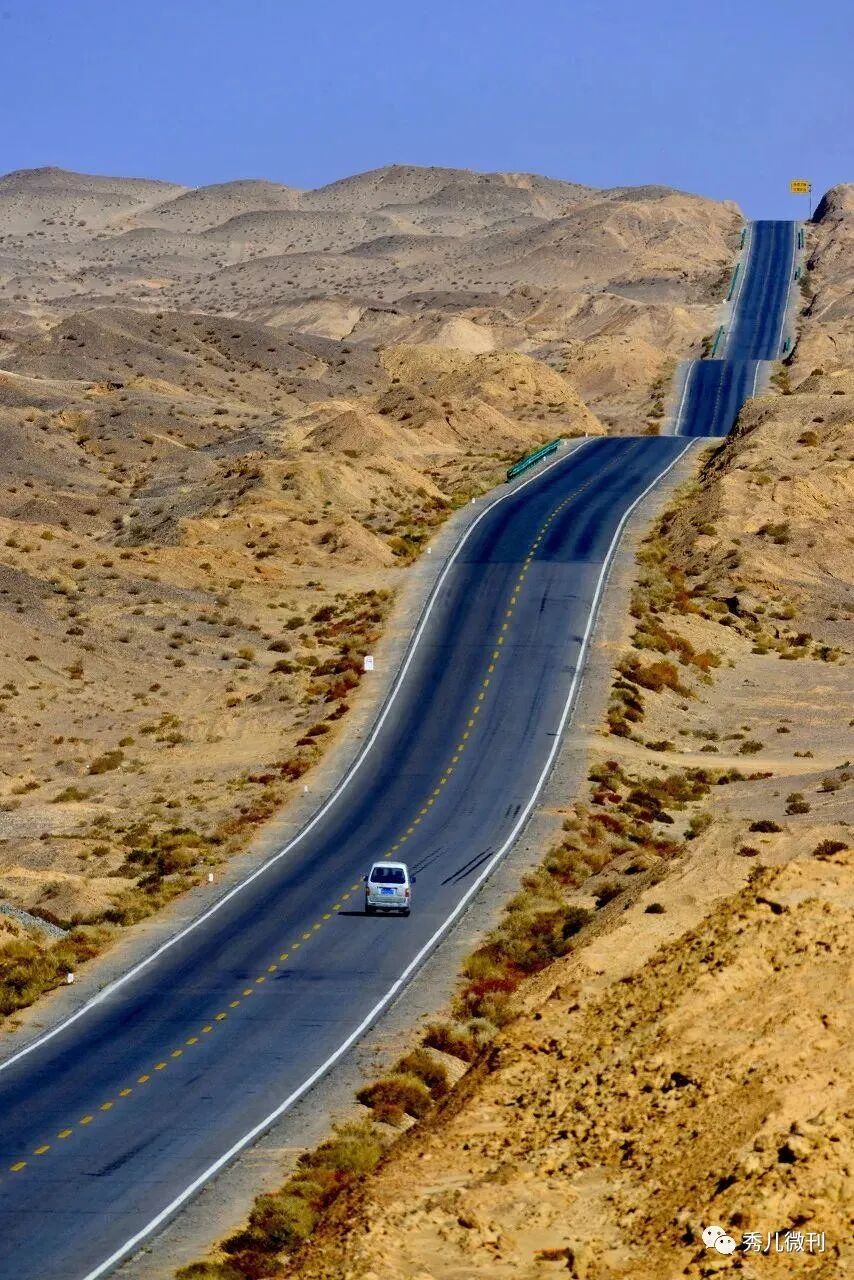 6,惊艳的315国道315国道是青海西宁通往新疆喀什的一条国道,全长3063公里,一路经过沙漠戈壁、咸水湖、雅丹地貌群。若是航拍这条国道,时而挺直,时而大波浪,像是直通天际,真的是壮观极了,是一条让人惊叹不已的天路。