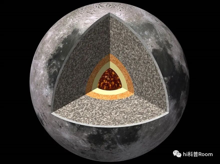 现如今,月球的构成部分大致如此:最外层是3-10米的被人称为月壤的柔软土质,其下则是约2000米的岩浆溅射物,再往下就是10-25千米的基岩,其次就是1400千米左右的月幔,最中心便是直径300千米的月核。