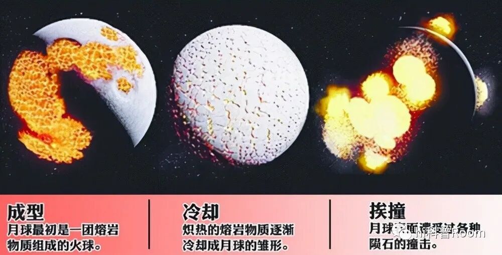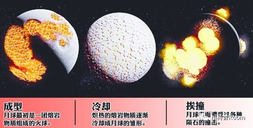 月球形态稳定之后,根据推测应该是一个“圆圆的”、“光滑的”天体,此时其内部岩浆仍旧在活跃翻涌;可惜的是,好景不长,大量的陨石在撞向地球的过程中被月球引力吸引进而撞在其表面,然而揽瓷器活”的月球却没有那“金刚钻”——月球最初的大气层较为薄弱,于是很多陨石在月球“脸上”留下了不可修补的大坑。