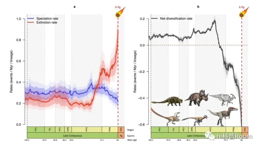 该团队分析了代表 247 个物种的 1,600 块恐龙化石。我们对六个主要恐龙科的物种形成和灭绝率进行了建模和评估:甲龙科、角龙科、鸭嘴龙科、驰龙科、伤齿龙科和暴龙科。物种形成率是适应环境变化的新物种产生的概率。研究小组的分析表明,在小行星撞击尤卡坦半岛之前约 1000 万年,非鸟类恐龙的多样性开始下降。物种多样性的下降意味着,恐龙无法适应新的和不断变化的环境,并与它们的灭绝率增加有关。换句话说,一项新的、复杂的分析表明,在小行星撞击之前 1000 万年,恐龙已经走向灭绝。那么,为什么不管小行星如何,恐龙最终都会面临灭绝的危险呢?在此期间发生了什么?恐龙为什么会灭绝?重要的是,恐龙在地球非常温暖的时期繁衍生息,并且它是在温暖时期有利于多样化的物种。他们依靠温暖的天气来维持稳定的体温。这是一个大问题,尤其是对大型恐龙而言。因此,它们难以应付凉爽气候。晚白垩纪表明地球正在逐渐转变为凉爽的气候。在像海龟这样的爬行动物中,温度决定了它们胚胎的性别变化,所以如果恐龙也这样做,那么较低的温度可能会导致恐龙失去性多样性。布里斯托大学的古生物学家 Mike Benton 教授解释说:“事实证明,导致恐龙灭绝的主要因素有两个。一是气候整体变冷,这使得依赖温暖气候的恐龙生活困难。这首先导致了食草恐龙的丧失,破坏了生态系统的稳定,使它们濒临灭绝。另一个是他们长寿。这就是为什么它们适应地球上新环境的速度很慢。”随着 1.6 亿年前的恐龙开始衰落,包括哺乳动物在内的其他群体开始占据主导地位。恐龙是如此巨大,以至于他们可能没有意识到灌木丛中有微小的毛茸茸的生物。但在恐龙离开之前,哺乳动物的物种数量开始稳步增加,这有助于在小行星撞击后建立新的生态系统。然而,一些研究人员不同意目前的研究是完整的信息。西班牙维哥大学的Alfio Alessandro Chiarenza说:“白垩纪晚期的岩石基本上没有保存下来,北美 60% 的地区缺乏这一时期的化石。在非洲,甚至在欧洲地区,这一时期恐龙的多样性都无法确定。亚洲根本没有合适的岩石。”恐龙实际上是如何灭绝的似乎是一个有争议的问题。但即使没有小行星的撞击,地球环境也可能接近恐龙漫长而过度繁荣的时代结束