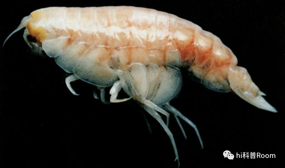 “短脚双眼钩虾”的神奇之处在于,它能够消化其他动物吐出来的食物。而这种能力,正是在极端环境下生存可遇不可求的。万米深处的海域,生物的食物来源少之又少,“短脚双眼钩虾”依靠着沉积在海底的植物木屑为食。它们的内脏中有微生生物,可以帮助消化纤维。