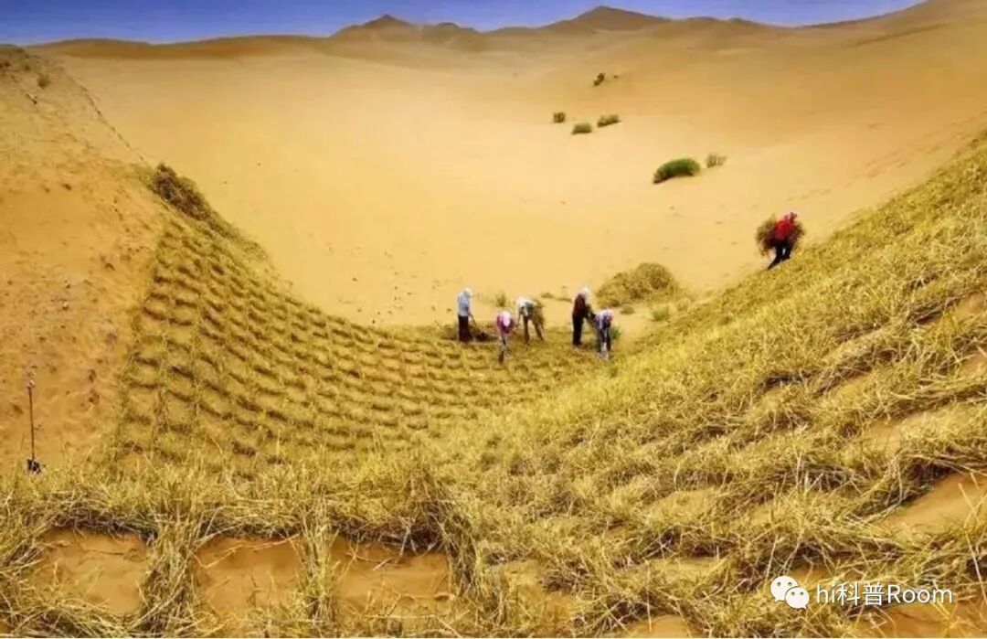 比如,“麦草方格”固沙法,即用麦草、稻草等材料在沙漠里扎成方格的形状,再借助方格截留住水分,降低风沙的侵袭速度。这一方法在毛乌素沙漠治理中发挥了巨大的作用,还在全世界广为推广,被外国媒体形象地称为“中国魔方”治沙法。
