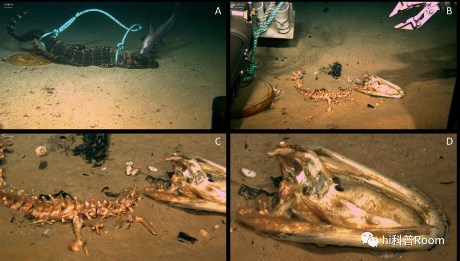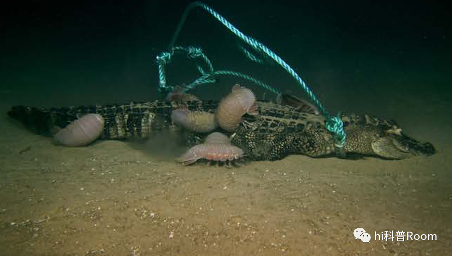 光无法到达深海,植物无法进行光合作用。因此,它往往缺乏所有营养素。说到食物,深海就像沙漠,但也有像绿洲一样的地方。在某些地方,大型哺乳动物的尸体可能会从水面下沉。这样的尸体是深海生物重要的营养来源,每带一具尸体进来,就要举行一场“深海盛宴”。以前的研究主要集中在鲸鱼等海洋生物作为深海生物的食物,但实际上,由于飓风和恶劣天气,淡水鳄鱼的尸体有时会被抛入海洋。