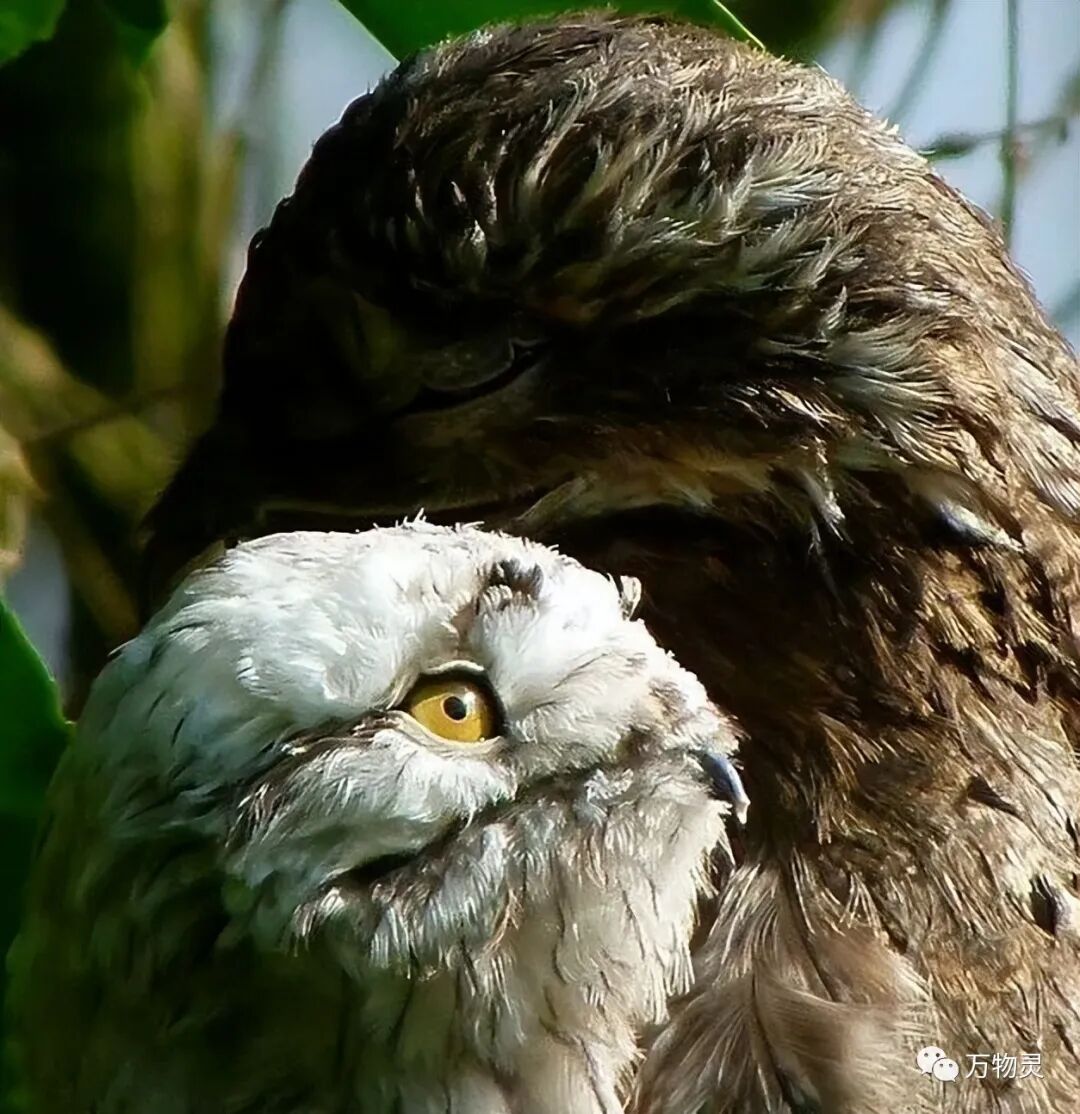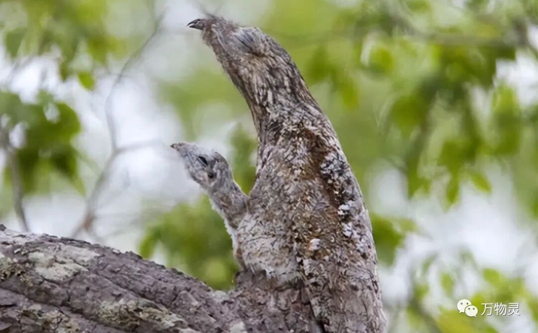林鸱的一生非常简单,用两个字就足以概括——伪装。而它们这一辈子也几乎就只干这一件事,孤独地找一些树枝和木桩,然后直立依附在上面。