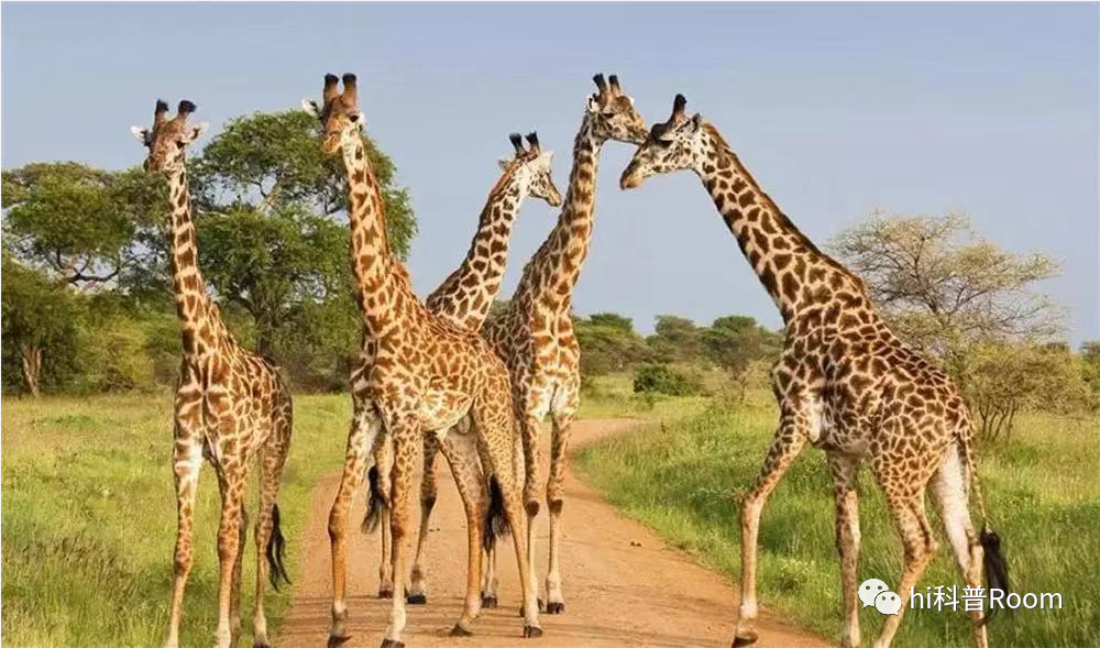 而其他的树木大都是以伞型为主的高大型植被,树叶多集中在上层,特别是长颈鹿喜爱吃的金合欢树的树叶也越长越靠上。所以为了获取食物,长颈鹿们只能不断的伸长脖子去够着头吃树上的叶子,慢慢的它们的腿和脖子就演化得越来越长。